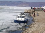 Lustig: Ganz Sibirien ist schnee- und eisfrei, nur der See ist noch zugefroren. Da machen die Fahrer von Hovercraft-Booten aber wenigstens Sommer wie Winter ein kleines Geschäft. Sieht spaßig aus, wenn die Stöckelschuh-Ladies sich aus den Booten ans Ufer quälen.