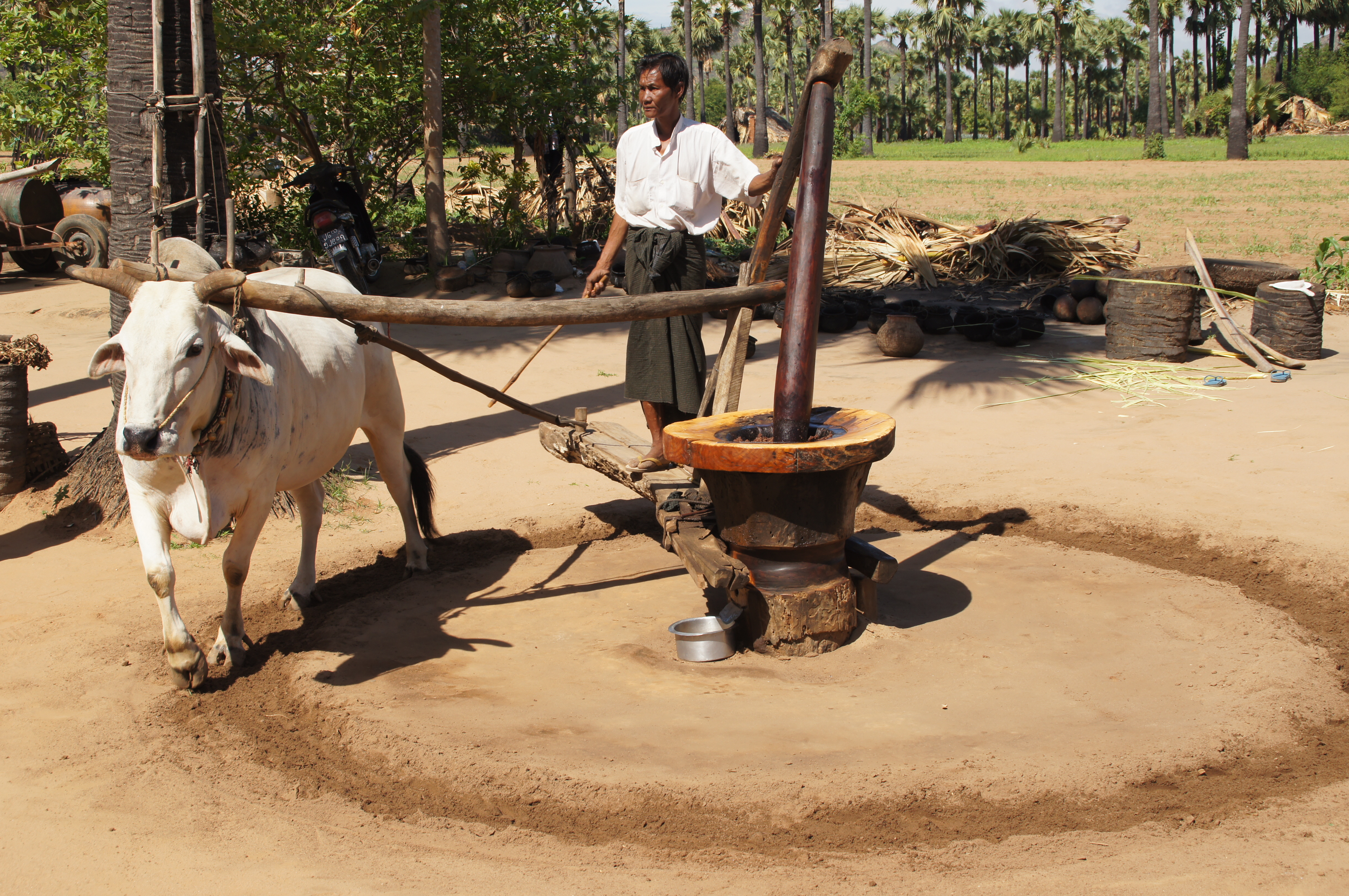 Erdnussölpresse Published 24. Juni 2013 at 4912 × 3264 in Bagan – Pagoden so weit das Auge reicht vierbeinig betriebene Erdnussölpresse
