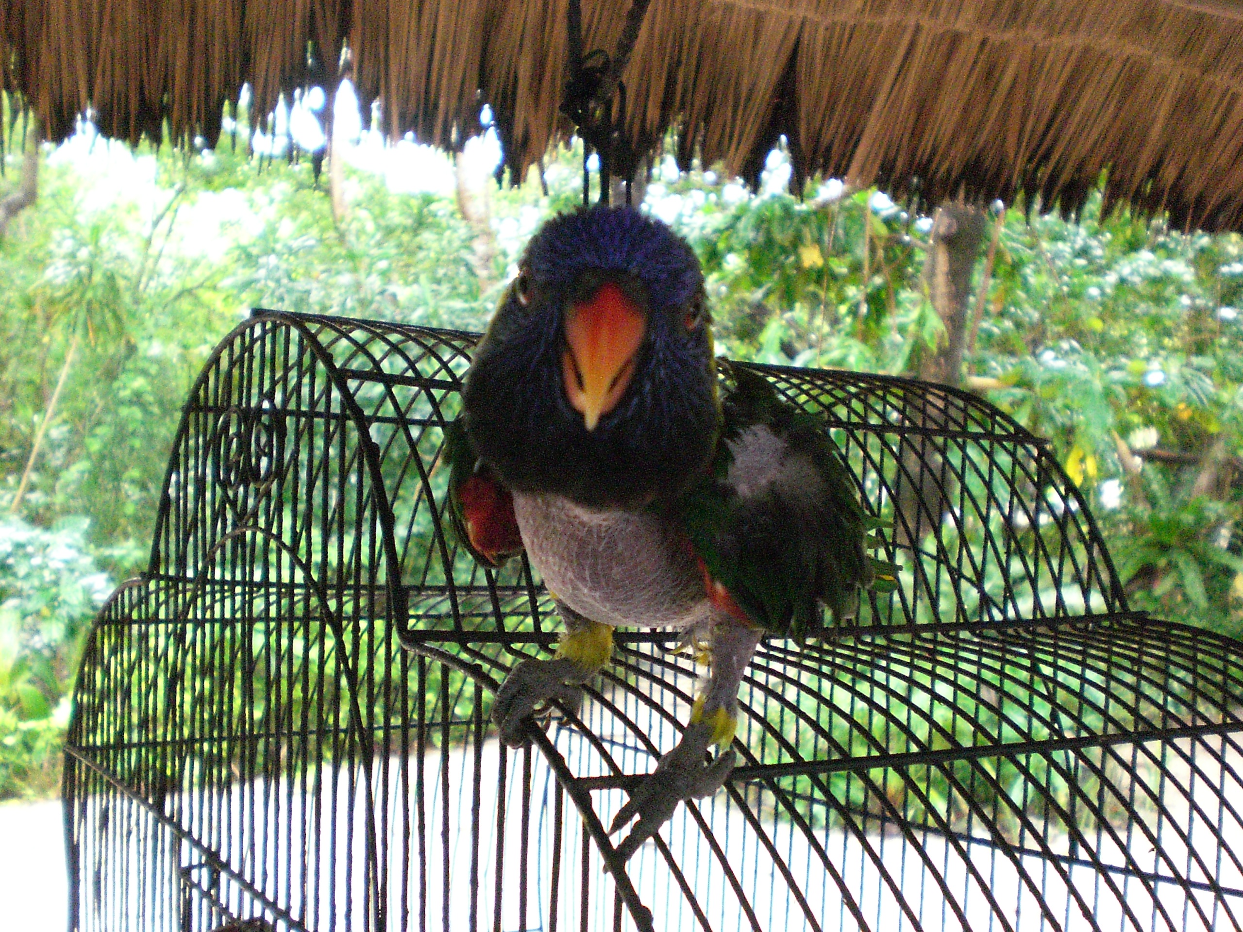 Und damit wenigstens ein Foto hier zu sehen ist, gibt’s den Punk-Papagei Clyde, der sich wenig eitel die gesamten Federn von der Brust rupft, wenn die Billiard-Partien zu schlecht sind.