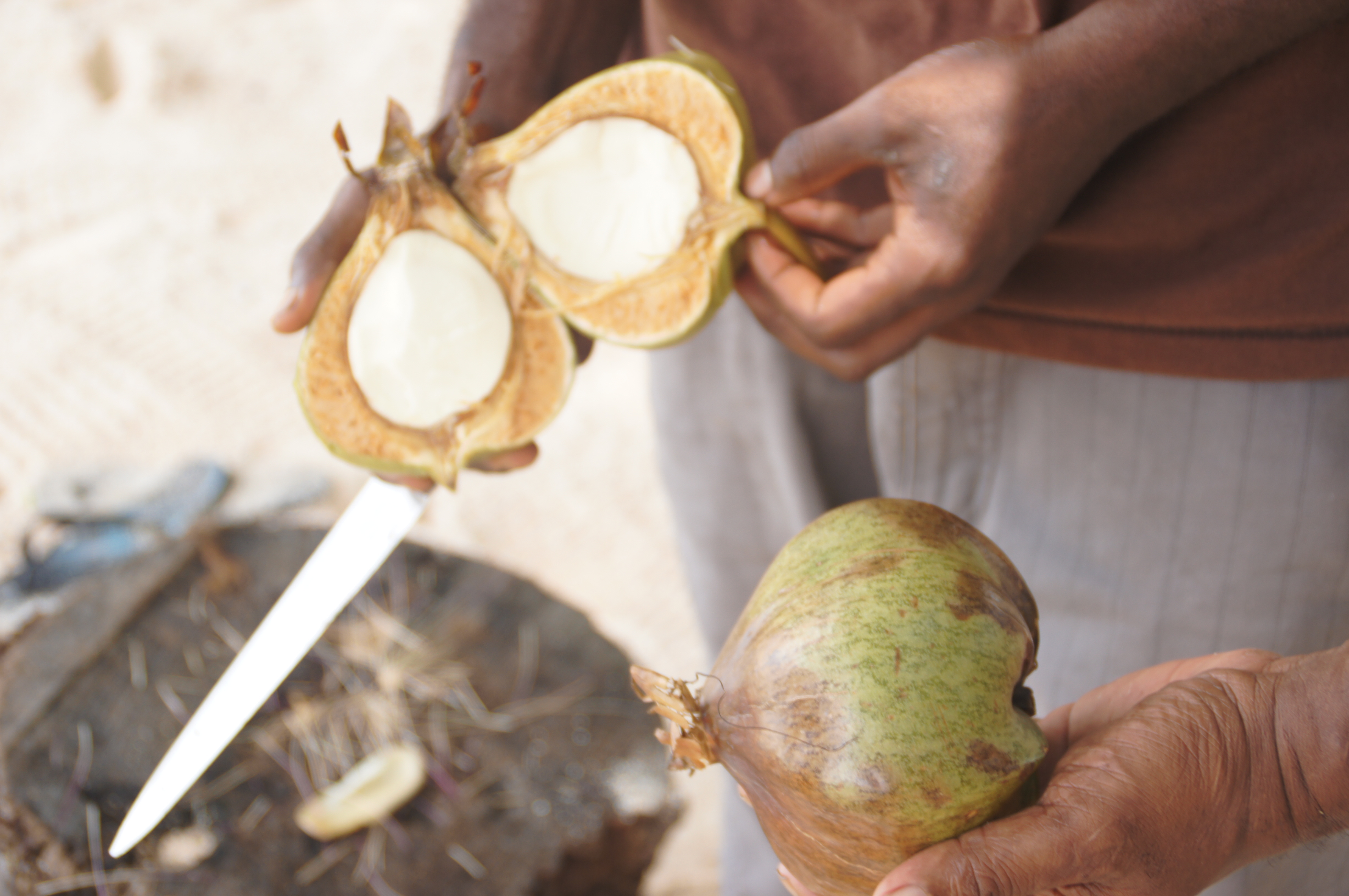 Oder sie erklären einem, wie man statt mit einem „fishing net“ mit einer „fishing nut“ sein Abendessen aus dem Meer holt. Man kratzt aus einer Nuss das Innere heraus, legt es ins Wasser, lässt die Fische sich dran gütlich tun – und dann werden sie so dösig, dass man sie per Hand fangen kann. Nur selber essen sollte man die Nuss nicht.