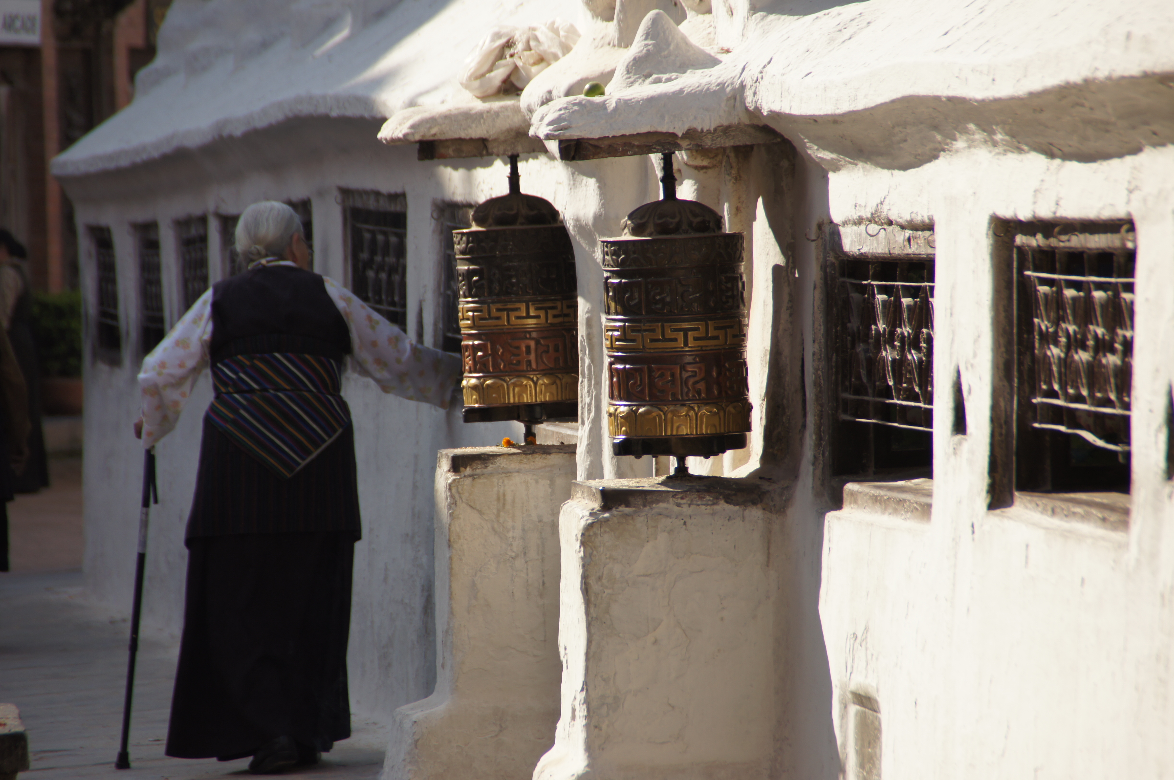 gebetsmühlenartig wiederholter Gang um die Stupa in Boudha