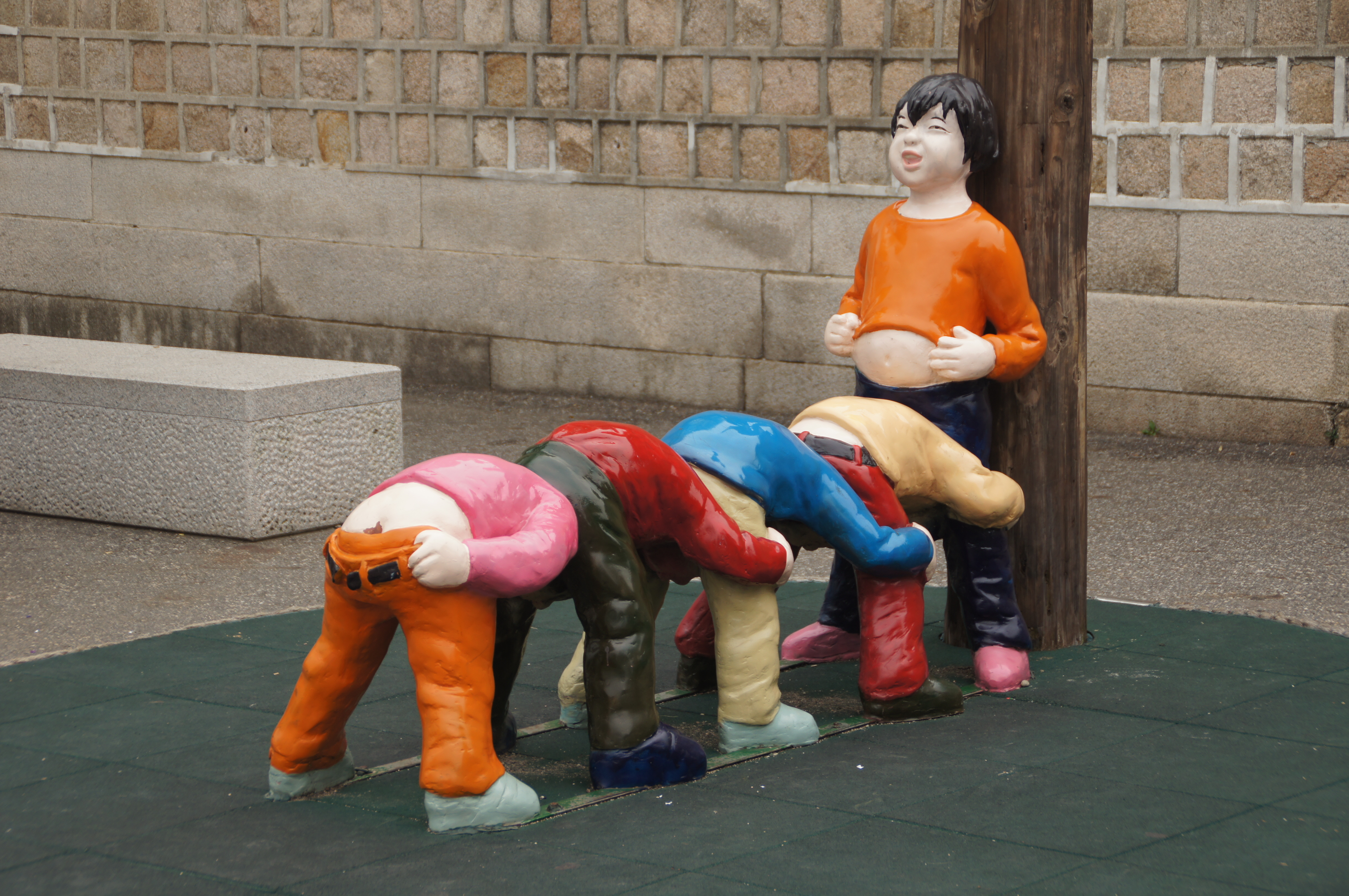 Die alten Männer, die sich – scheinbar zu Hunderten – in einer Reihe zusammensetzen und das chinesische Brettspiel Go spielen, trinken dazu alle diese kleinen Yakult-Fläschchen. Die größeren Flaschen, die im Leben der Südkoreaner eine wichtige Rolle spielen, sind mit Soju gefüllt. Das ist ein Schnaps, der sich zwischen 20 und 40 Prozent bewegt und bei jedem Essen und Beisammensein in rauen Mengen getrunken wird. Vor allem nach Feierabend sieht man dann einige Businessleute sich nebeneinander an einer Wand abstützend, wie sie sich die Sache mit dem Soju noch mal durch den Kopf gehen lassen. Streng nach dem Motto: „Vorbeugen ist besser als auf die Schuhe kotzen“.
